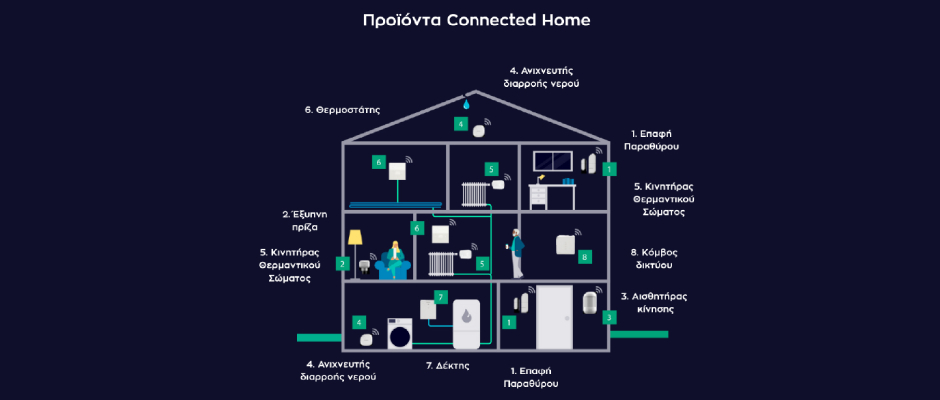 Μπορείτε να δείτε όλα τα διαθέσιμα προϊόντα και λύσεις Connected Home στο site μας και να επιλέξετε εκείνα που θα αναβαθμίσουν την καθημερινότητά σας με έξυπνο, απλό και αξιόπιστο τρόπο.